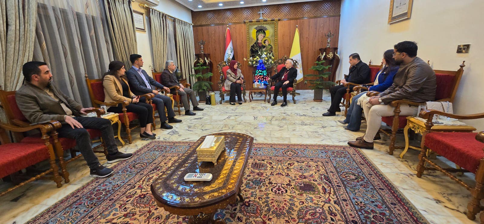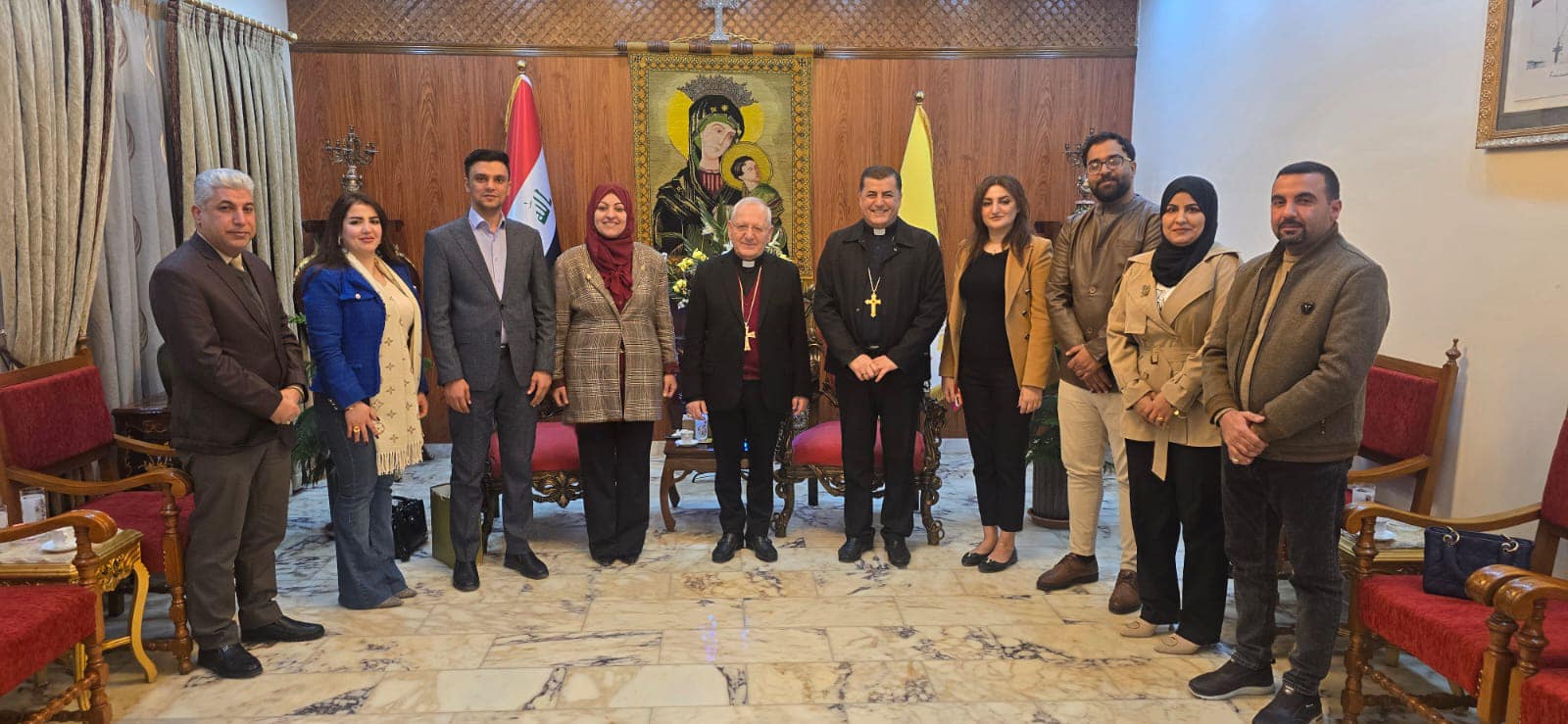The monitoring and combating hate speech team from Masarat Foundation in Baghdad met with His Beatitude Cardinal Louis Raphael Sako. After the team extended their congratulations for the New Year, the Masarat delegation presented their intensive activities and the foundation’s program plans to monitor and combat hate speech against minorities.