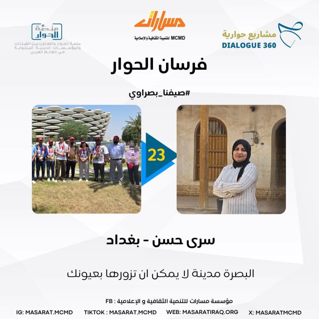 This guide was not our only gain. At the church, we met Bishop Habib Al-Noufali, who shared life lessons in philosophy and theology, the importance of protecting diversity, and understanding others. He filled our hands with wonderful publications, beginning with the Holy Bible, feeding our souls with the sanctity and purity of the place. Similarly, with the tribal council and Basra’s components at the Mandaean celebration, and at the Artists’ Syndicate, the spirit of Basra shone everywhere.