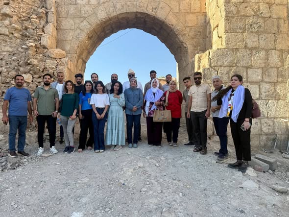 Participants exchanged discussions and stories about the city’s religious diversity and the forms of coexistence that prevailed before 2014. They also visited city landmarks, including the remains of the Yazidi Sun Gate, Christian churches, and the Muslim mosque in the same area—sites united by the آثار of destruction and battles that ended eight years ago without any real beginning of reconstruction, while many residents remain displaced in camps across several cities.